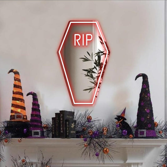 Coffin RIP Neon Mirror Sign,Gothic Room Decor,Coffin Mirror Sign,Halloween Gifts Party Coffin Decor,Gothic Lover Gift,Halloween Decor-7.7x13'' Red